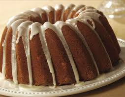 Poke holes in the top of the warm cake; spoon 1/4 cup sauce over cake. Let stand until sauce is absorbed. Repeat twice. Poke holes into sides of cake; brush remaining sauce over sides. Cool completely. Yield: 12-16 servings